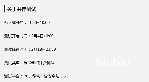 本次共存测试采用限量删档形式,准入门槛明确:须于1月23日24时前完成官方发布的招募问卷,方具备获取测试资格的可能。通过审核的玩家,可于2月3日上午10:00起启动客户端预下载;游戏内容正式开放时间为2月4日上午10:00;整体测试周期持续至2月18日23:59结束。总计为期十六天的深度体验窗口,为玩家提供了充分探索与反馈的空间。