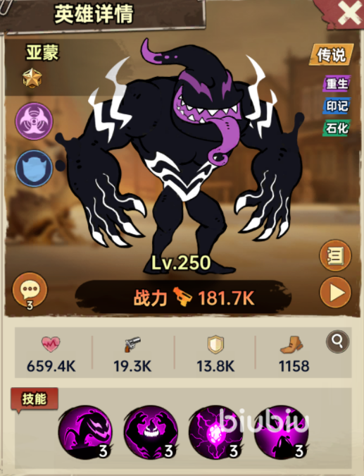 普通技能“石化触手”具备双重功能性:一方面造成直接伤害并附带一回合石化控制;另一方面,当亚蒙受到攻击时,将自动触发“致命寄生”,对攻击者施加固定伤害,并有一定概率恢复自身最大生命值。其被动“不死之身”尤为关键——角色生命值归零后虽会暂时离场,但进入新回合时即复活并恢复100%生命,形成可持续作战闭环。