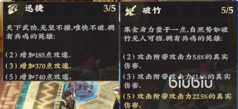 当前版本支持五人出战阵容,站位布局需同步考虑“阵法共鸣”系统。羁绊效果按激活数量分为三级,等级越高,属性加成与特效强度越显著。部分英雄具备多重共鸣适配性,例如程应华可同时触发“迅捷”与“破竹”两类羁绊,使阵容构建更具弹性。主流搭配方案包括五同羁绊纯系阵容(强化单一属性维度)或三加二混合羁绊阵容(兼顾生存、输出与功能平衡),玩家可根据主力养成角色灵活选择,无需拘泥固定模板。