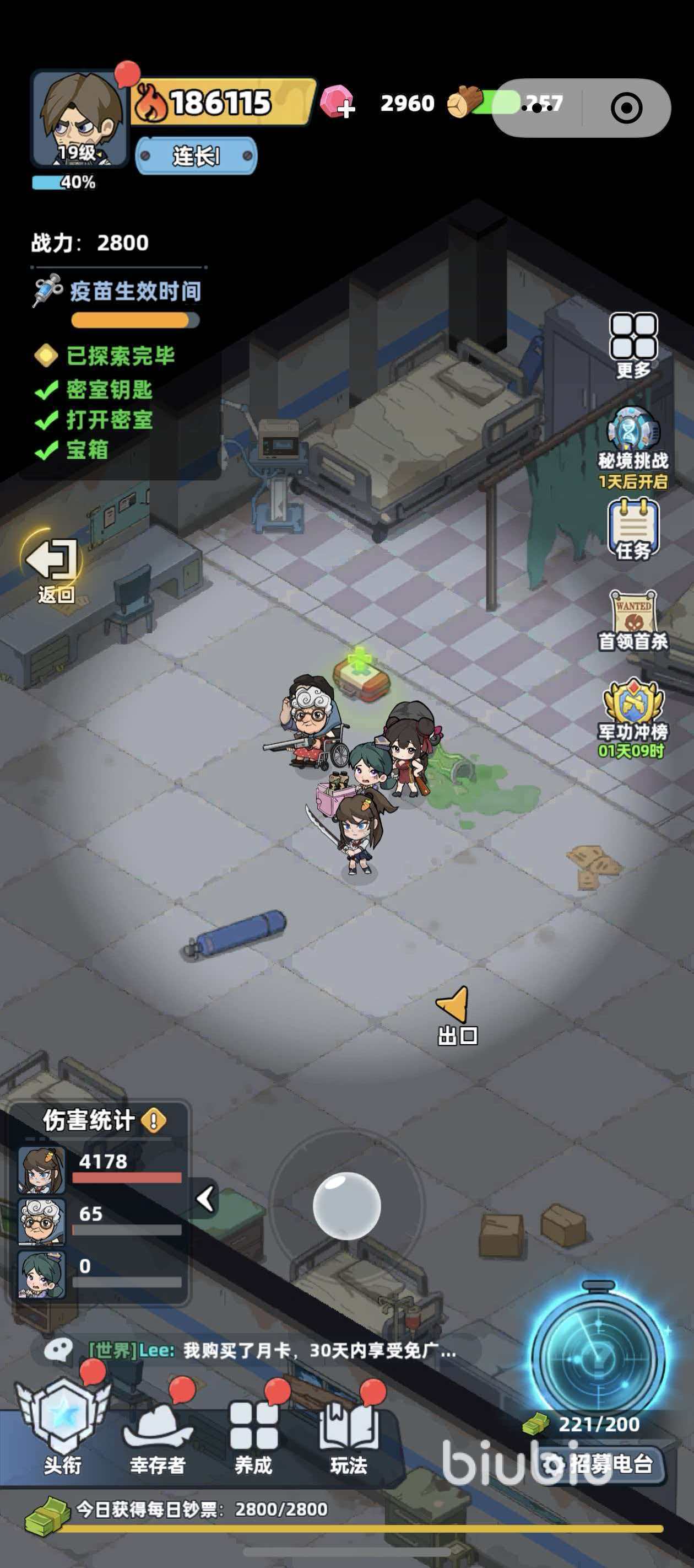 以废墟之城普通医院为例(非寒冰之地分支),其准入门槛为战斗力2800。进入首层后,地面固定刷新一支疫苗,必须立即拾取并注射。该疫苗作用为抑制变异状态,持续时间有限;若探索过程中倒计时归零,角色将陷入不可控变异,丧失行动能力。因此务必关注UI右上角的疫苗剩余时间,并在失效前完成补注。