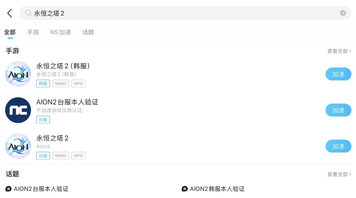 另外,安装本体包的时候,部分的文件需要维持网络通畅继续下载,若遇到网络波动断点,重新连接出错也会导致闪退。大部分玩家首选用biubiu加速器,维持一个又稳又快的网络环境,用来减少丢失数据和红网延迟的风险。而且这款软件的使用方法非常简单,大家安装登录后,搜索永恒之塔2,然后点击icon就能立刻启动加速。可以看到,贴心的平台已分类好不同区服页面,比如韩服和台服,大家选好自己账号所在区也很便捷。
