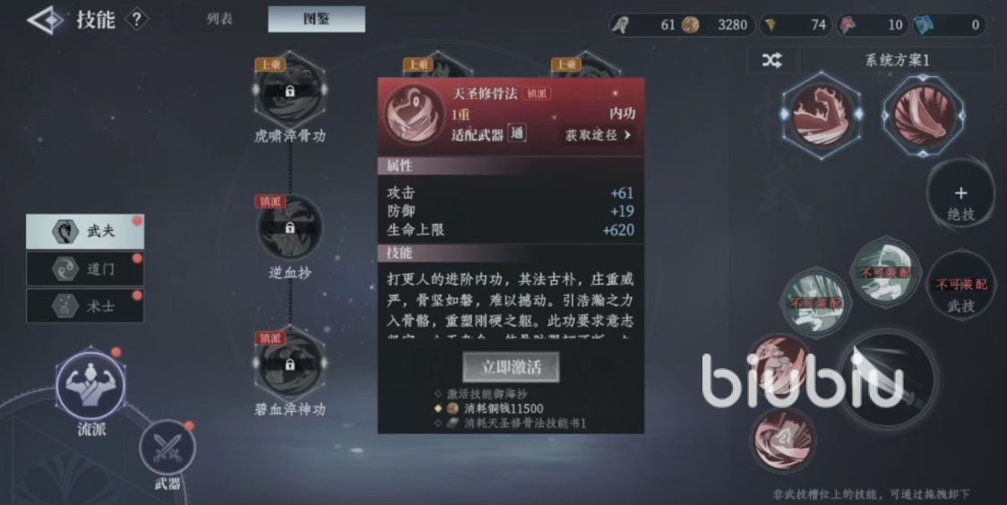 武夫流派以高爆发、强生存见长,代表人物许七安即以五道修为奠定战力根基。该流派可修习三门核心内功:天圣修骨法,专注提升持续作战能力,具备生命值快速回复效果,并可在受击瞬间触发伤害免疫;碧血淬神功则侧重战术容错,提供一次濒死免伤机会,同时随敌方气血降低而动态激活减伤或削弱其伤害加成效果,形成攻防一体的压制节奏。