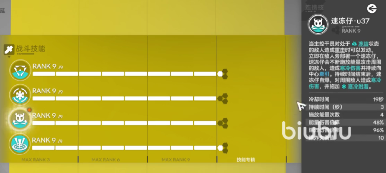 二技能可部署小型战术机器人,持续牵引并干扰敌方单位行动路径;机器人存在时间结束时自动引爆,造成范围伤害,并为目标附加“寒冷印记”。该印记不仅延长目标受击僵直时间,更可作为冰系协同触发器——当其他冰属性干员攻击带有此印记的敌人时,将激活额外增益效果,大幅提升队伍整体元素反应效率。