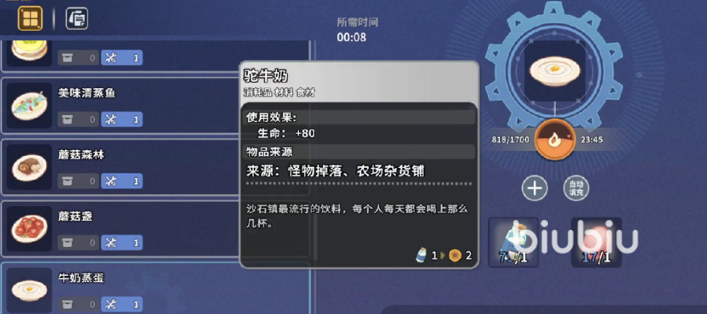 配方获取是另一硬性条件。牛奶蒸蛋的制作方法收录于《中级烹饪书》,该书籍需前往沙漠地区向沙漠商人购买。购得后需手动打开书籍并完成学习操作,方能将食谱录入图鉴。此外,角色烹饪技能等级须达到3级方可实际操作。若当前等级不足,建议通过反复制作烤土豆、煮鸡蛋等低阶料理积累经验,稳步提升至目标等级。