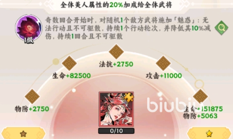 完成美人收集与基础培养后,所有已激活美人可为全队武将提供20%的全体属性加成。每位美人除基础数值外,均配备不可替代的专属技能:貂蝉拥有“魅惑”效果,命中目标后使其陷入无法行动状态,同时降低目标10%减伤率,且该减益效果不可被驱散;大乔的“红袖添香”可为当前生命值最低的3名友方单位恢复6%最大生命值,并额外提升6%减伤;孙尚香释放“枭鸣箭阵”,可对多名敌方单位造成物理伤害,并同步削弱其受到的治疗效果及护盾获取能力。
