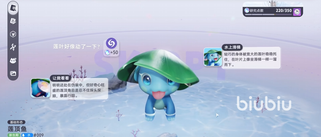 水属性治疗型伊莫,填补队伍功能性缺口。主动技能“治愈之水”可恢复全体友方生命值,首次回复量为施放者最大生命值的6%,随后每秒持续恢复施放者最大生命值的1%。该机制适配主流输出循环节奏,可在主C完成一轮技能后无缝切换入场维持团队续航。进化路径为莲顶鱼→顽皮鱼(解锁2级游泳能力,提升水下移动效率)→莹冰龙(获得冰属性,拓展元素应对维度)。