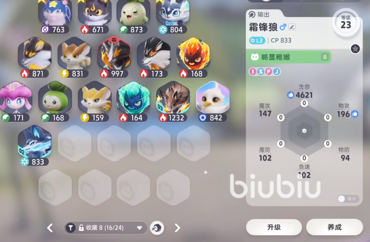 霜锋狼为纯冰属性单位,拥有标志性技能“口吐寒气冰刃”,命中目标后除造成基础伤害外,附带强制定身效果,使其在队伍中承担核心控场职能。该宠物具备明确进化路线:达到指定条件后可进阶为霜雷狼。进化后,魔攻与速度属性均提升30%,并解锁专属被动技能“冰面探索”,允许角色在冰原第一带自由穿行。后续面对含冰原地形的关卡时,切换为该形态即可规避环境限制,大幅提升通关效率。