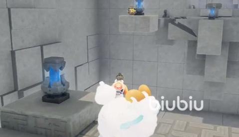 腾云驾雾地宫是隐藏宝箱密度最高的区域之一,所有宝箱均需通过机关解谜或环境交互解锁。首处宝箱位于主入口附近:靠近该点后,可见一个紫色电箱,将其向左推动至电路断口处完成通电,前方封闭门随即开启,宝箱即显露于视野中央。