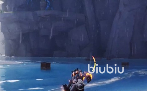第三处宝箱的开启流程包含两步关键操作:先将区域内金色球体移出原位,再从右侧水域拖拽木箱至指定位置充当踏板,由此进入隐蔽空间;随后将木箱重新置入水中,使其填补电路缺口形成阶梯,沿此路径登顶即可获取宝箱。