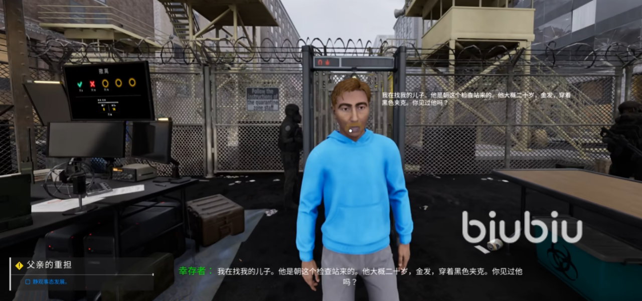 游戏设定中,每日刷新的幸存者均为具备独立背景档案的NPC,其身份、关系链与行为逻辑均经过精细编排。“父亲的重担”即为典型的情感驱动型任务:需将日程推进至第13天左右,此时将出现一名身着白色上衣、黑色夹克、深金色短发的青年男性,体表呈现明确感染征兆(如皮疹、低热、行动迟滞等)。切勿立即执行处决指令,须将其转入检疫区观察。