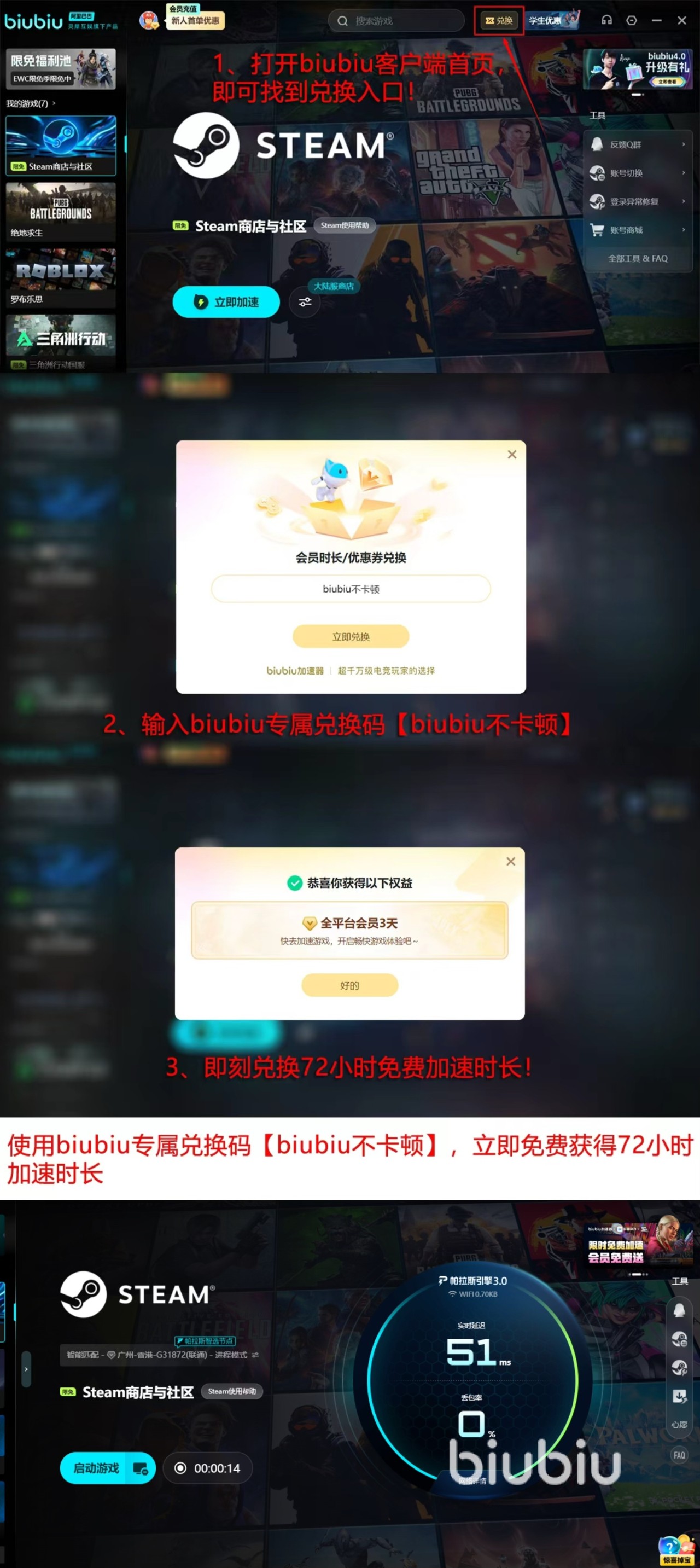 新用户注册后即可立即启用24小时全功能试用权限;同时,所有访问者均可凭兑换码【biubiu不卡顿】免费领取3天加速服务,无需绑定支付方式,零门槛体验网络优化效果。