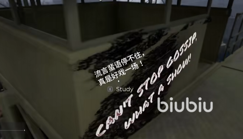 5、第五处位于清除区外围高点。跟随新脚印跃上平台,正对废弃油桶上方可发现第一行诗;落地后左行,依提示绕旗杆一周,新脚印引向哨塔。登至二层小亭,于围墙上找到第五句:“流言蜚语停不住,真实好戏一场。”
