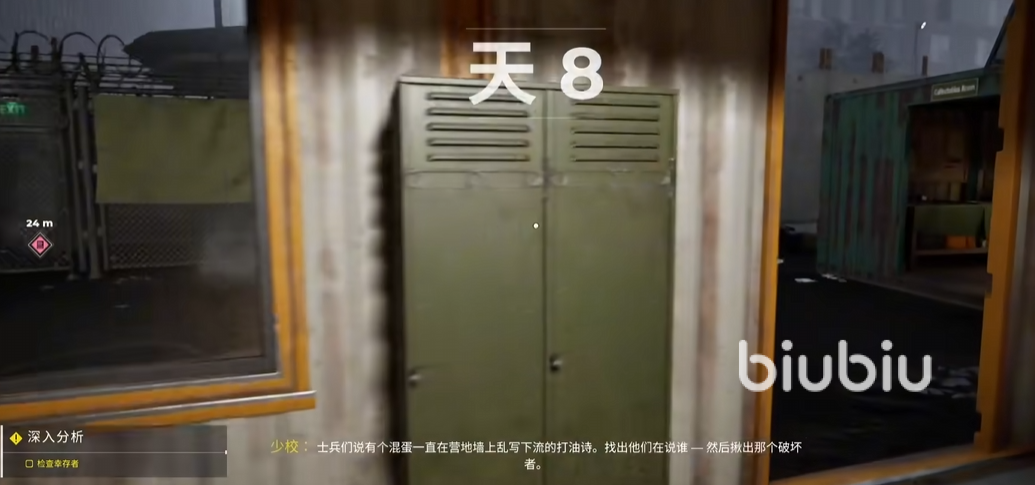 该任务于游戏第八日触发——与少校对话后,将获知营地内出现多处匿名涂鸦,内容为风格戏谑的打油诗,士兵已上报需追查始作俑者。任务采用线性引导机制:仅当前一处诗句被成功识别并交互后,下一段红色脚印才会生成,后续点位随之解锁,不可跳步或逆序操作。