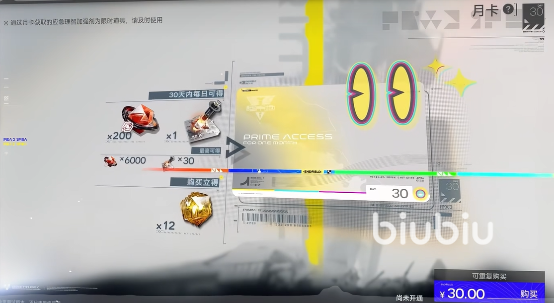 入门级玩家首选基础月卡组合。自1月22日开服起,30元月卡可稳定获得12个源石与6000玉;68元大月卡则提供36个源石、1件自选武器及大量通用养成素材。两者合计98元,是当前阶段综合性价比最高的固定投入方案。若计划以轻度节奏体验游戏,连续购买3个月该组合(即3份30元+3份68元),总支出为158元,可持续支撑角色培养与常规抽卡需求。