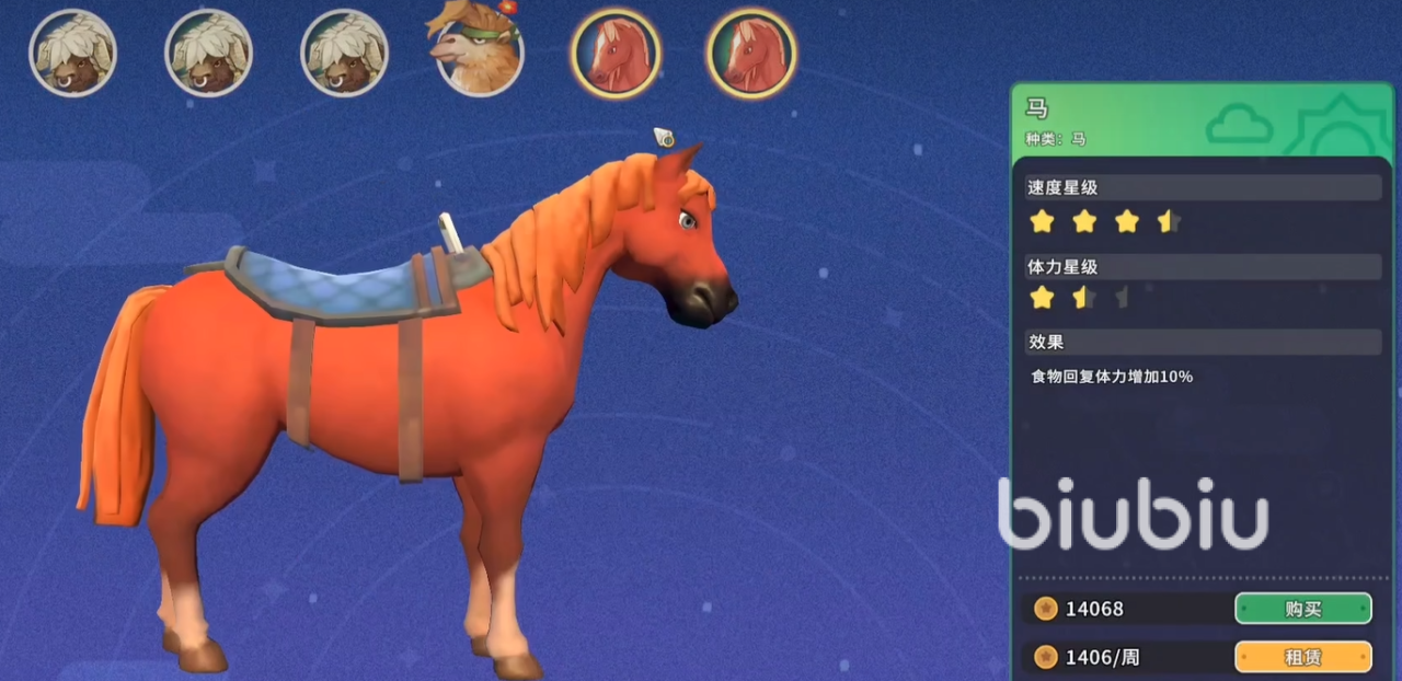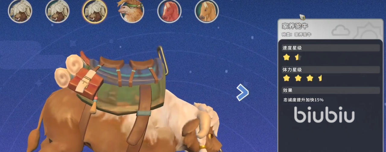 驮牛则代表另一种策略方向:以移动效率让渡换取负重能力跃升。其核心优势在于内置扩展背包,骑行状态下自动提升物品栏容量。该特性对高频采集型玩家极具价值——单次外出即可携带更多矿石、木材、草药等基础资源,大幅减少往返次数,提升单位时间产出率。同时,驮牛普遍具备更高的体力值,在长距离运输或连续作业场景中稳定性更强,不易因疲劳中断行动。
