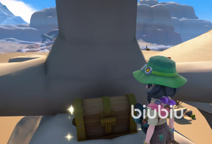 除主骨架宝箱外,尤弗拉沙漠共分布有四只宝箱。第二只位于巨型骨架正下方的沙地草丛中,外观被完全遮蔽,需使用羽毛掸子反复清扫方可显形并解锁。需注意:该区域处于三叉戟蝎活动范围,开启前务必清空周边敌对单位,避免中断操作。