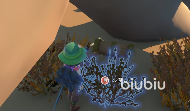 第三只宝箱埋藏于巨型骨架附近沙丘之中,地面仅露出微小凸起轮廓(见图示)。同样依赖羽毛掸子进行清理作业,成功显露后即可开启,内含油条配方,用于后续烹饪系统制作油条。