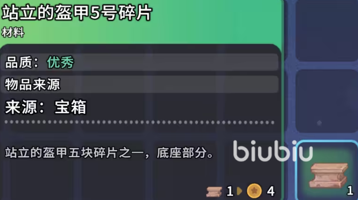 第四只宝箱坐落于死海区域靠近铁道线的沙地边缘,表面同样被流沙覆盖,识别依据为沙面轻微隆起形态。使用羽毛掸子清除掩埋层后可正常开启,奖励为站立的盔甲5号碎片。