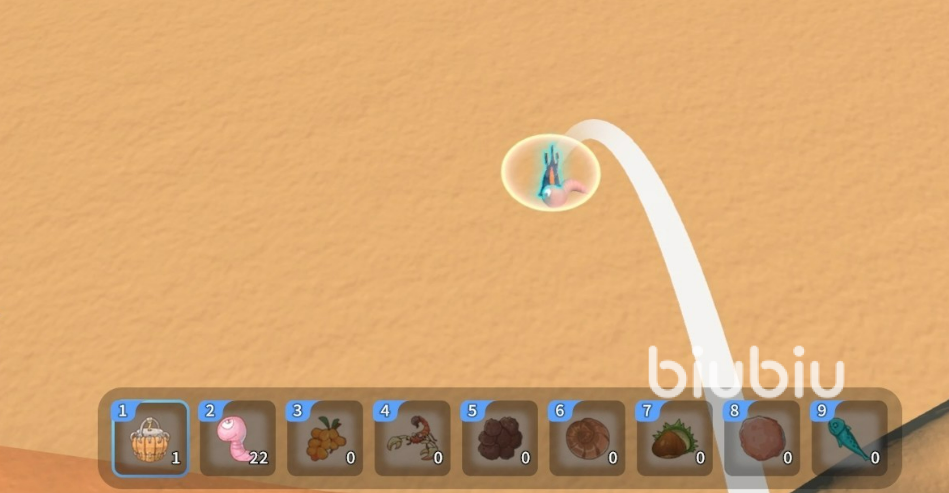 第二步是准备有效诱饵。游戏中唯一适配沙捕系统的活体诱饵为“沙面虫”,其分布范围覆盖大部分户外开阔区域,如风蚀谷地、干涸河床及沙丘边缘地带。建议单次采集不少于5只,以应对多次尝试失败带来的消耗。注意:其他昆虫或植物类物品无法触发沙捕反应,仅沙面虫具备吸引目标生物的特性。
