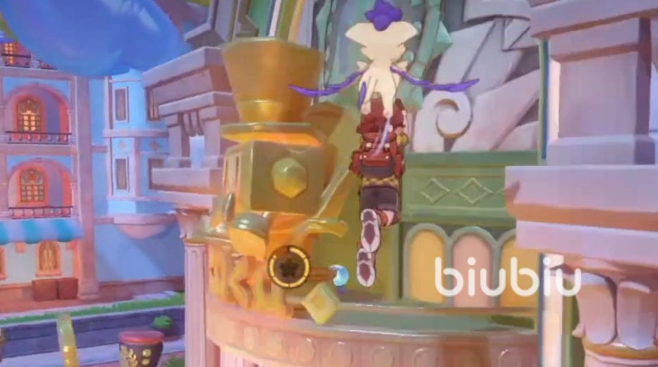第二步:收集水晶球。升空后可见首个悬浮水晶球,拾取后立即转向右侧相邻房屋,依序飞向每栋带屋檐建筑的顶端,共可采集5颗同类型水晶球。集齐全部5颗后,空中将自动生成一道泛光魔法阵,即为秘境正式入口。