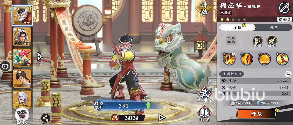 最后一位是高生存+自愈型掌法宗师——程应华。武魂品质达优品级别,被动与主动技能均围绕“八卦掌”体系构建,攻击附带持续回血效果,配合高基础生存属性,使其在持久战与以少敌多场景中表现尤为突出。其技能组合强调攻防转换与节奏掌控,虽对队伍协同要求较高,但一旦成型,便能在高强度对抗中持续压制对手并维持己方战线稳定。