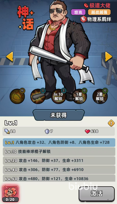 在物理系阵容中承担关键羁绊触发与前排承伤双重职能。其主动技能可突进单体敌人,造成相当于目标最大生命值10%的物理伤害,并施加“物理易伤”效果;同时恢复自身过去5秒内损失生命的15%(不低于最大生命值5%)。该易伤效果具备叠加反馈机制:当受易伤目标再度被极道大佬攻击时,额外承受20%物理伤害,大幅强化物理队整体输出效率。