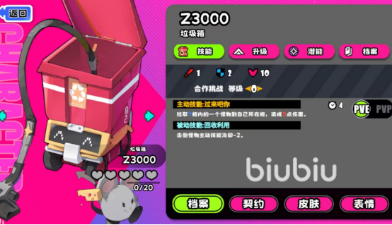 垃圾箱的主动技能是其战场控制力的核心来源:可对半径七格内的敌方单位施加强制位移效果,将其拉至自身所在格,并造成显著伤害。在PVP模式中,该技能固定造成2.2点伤害,同时使目标移动速度降低2点,持续两回合;在合作模式中,则对怪物造成5点伤害并附加减速效果,有效提升团队集火效率与走位容错率。这一技能不仅具备开团先手能力,亦可反制突进、打断关键动作,是构建节奏转换的关键支点。