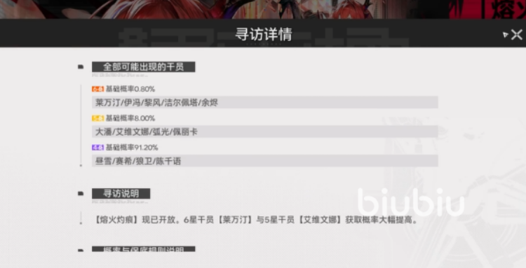 参与“熔火灼痕”寻访需满足前置主线进度要求——完成指定基础关卡后,系统将自动解锁该限时寻访入口。抽卡方式支持两种:使用专属“寻访凭证”或消耗通用游戏货币。其中,寻访凭证主要通过活动任务获取,建议优先使用,以保留通用货币用于其他必要支出。本卡池采用独立保底机制,抽卡次数不与其他卡池共享,且六星干员的基础出率高于常驻池,虽未公开具体数值,但实测反馈显示目标角色出现频率显著提升,对目标明确的玩家更为友好。
