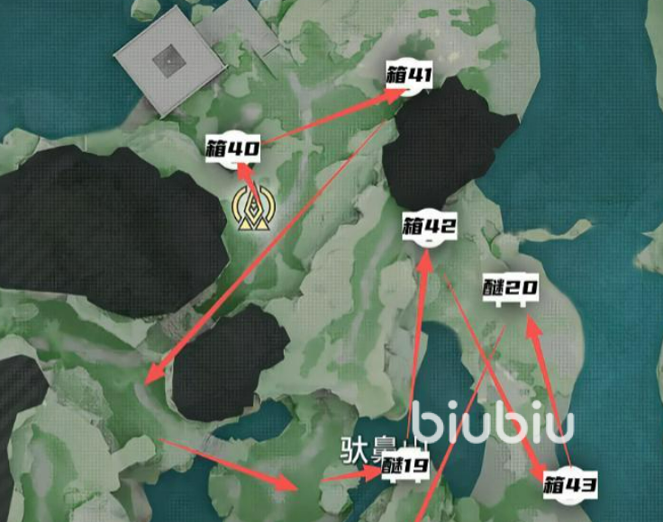 驮鼻山为武陵城宝箱分布最集中的区域之一,总计醚质20处、宝箱44个。受山地地貌影响,大量宝箱置于高台、崖顶或悬空结构之上,需借助地形跃升或路径绕行方式抵达。