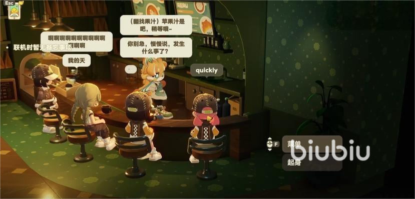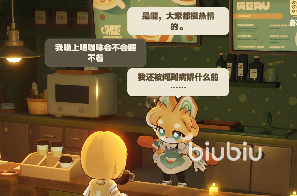 除情感交互外,该角色还具备明确的功能性定位:支持点单操作,可为玩家提供咖啡、甜点等饮品食物;在多人联机场景下,亦能协助其他玩家完成订单处理,提升协作效率。其服务机制覆盖单人休闲与多人聚会两种典型使用路径,是推动游戏内社交节奏的关键支点。