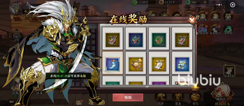 登录游戏后,右上角的【在线奖励】是新手不可忽视的稳定资源入口。该系统按累计在线时长发放奖励,每日可领取招募帖、铜钱、经验丹及蓝色品质装备(如头盔、靴子等)。这些蓝装虽非顶级,但能有效填补前期武将基础配装空缺。值得注意的是,招募帖为抽卡核心消耗道具,需长期积累;而挂机收益会随在线时长线性增长,所获经验量可观。即使无法深度参与副本挑战,仅通过挂机也可实现平稳升级,显著降低养成门槛。