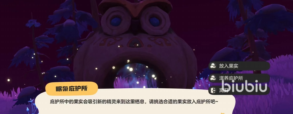 方式一:启用滋养庇护所功能。该功能开放门槛为角色等级达到40级。满足条件后,在猫头鹰处放置果实时将解锁“滋养庇护所”选项。该系统可对眠枭庇护所进行升级,升级完成后,对应庇护所刷出闪光精灵的基础概率将获得提升。需注意:不同庇护所仅适配特定种类的精灵,且必须使用匹配的果实才能激活最优产出效率,这对闪光获取成功率具有显著影响。