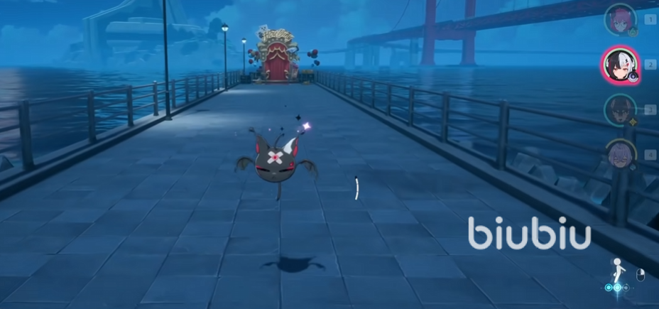 闪避操作支持双模式:常规短按实现位移闪避;长按则触发形态转换,进入“玩偶小恶魔”状态。该状态下角色悬浮离地,移动速度显著提升,具备优秀地形跨越能力,适用于快速转点、规避复杂障碍或高效探索地图。需注意的是,该形态持续消耗体力值,无法无限维持。
