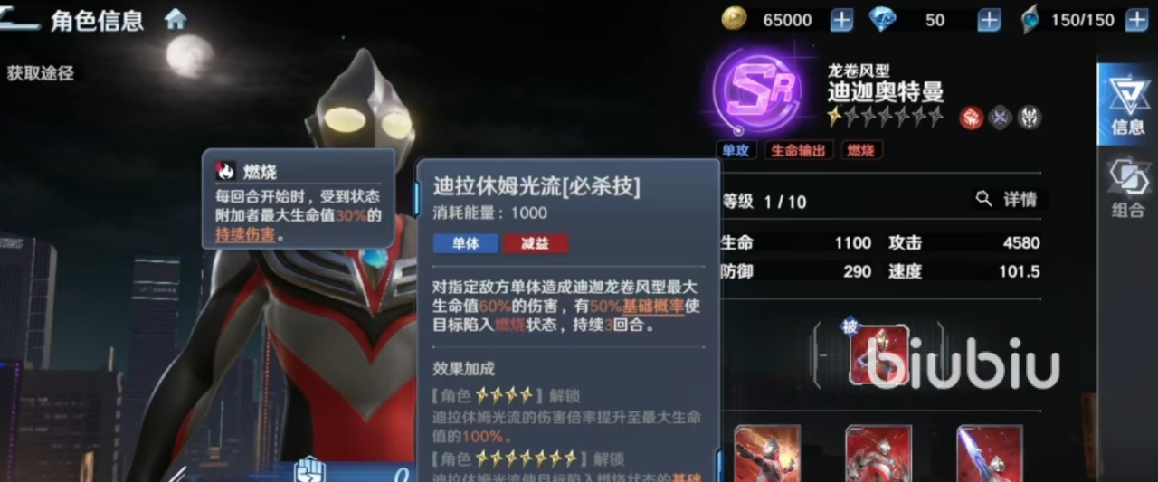 综合来看,迪迦奥特曼龙卷风型构建了一套以“能量吸收—百分比重创—燃烧续伤”为内核的攻防闭环体系。该体系对操作节奏与养成策略均有较高要求,尤其适合注重战局预判与资源精算的玩家。通过精准把握敌我技能交互节点,并围绕最大生命值进行定向培养,玩家可充分释放该形态的战术潜力,在各类清场与持久战场景中建立显著优势。