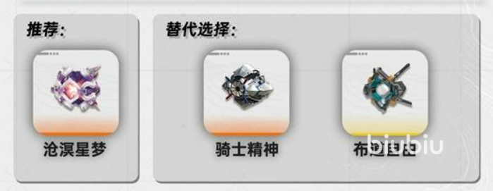 武器选择以“沧溟星梦”为最优解,其属性精准契合艾尔黛拉对技力回复与技能倍率的需求。若暂未获取,可依次选用“骑士精神”或“布道自由”作为过渡方案,二者虽在特效强度上略有差距,但足以支撑前期至中期的常规作战需求。