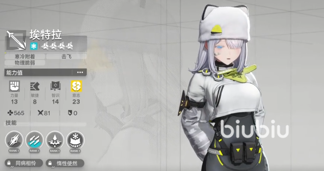 在实战体系中,埃特拉并非传统高爆发近卫,而是侧重寒系辅助与节奏调控。她可对敌人施加寒冷附着,并触发击飞效果与物理脆弱状态,为队伍创造连携输出窗口。其两项技能均围绕寒冷机制深度构建:一技能“同病相怜”在碎冰效果触发后,使下一次战技“凝声”返还15点技力,该效果不可叠加;二技能“惰性使然”赋予自身寒冷抗性——免疫寒冷附着,且受寒冷伤害降低20%,显著提升持续作战稳定性。
