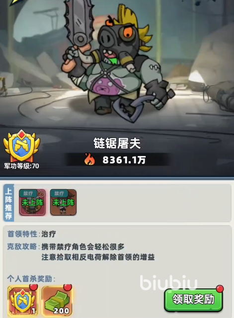 第一阶段(血量100%–65%):目标锁定为Boss手持的链锯本体。此部位防御最低,且每次被击中后会产生明显动作僵直。建议全员保持30米以上安全距离,穿戴基础防护装具(可降低30%所受伤害)。集中火力持续射击链锯,每轮完整输出可稳定削减Boss约两格血条。切忌分散攻击其他部位,否则无法触发阶段转换。
