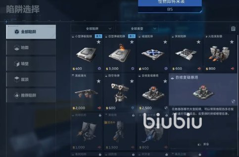 副武器建议选择具备移动速度加成效果的镰刀,用于补足贴身作战时的爆发伤害及机动性。需注意的是,开局资源极为有限,所有强化材料、插件槽位及陷阱部署点均需精打细算。在确定主副武器配置后,应立即进入实战准备阶段。前四波的核心目标并非单纯击杀,而是构建完整防御体系:合理布设减速陷阱、优先升级关键炮台,并预留至少两处备用陷阱位应对突发状况。