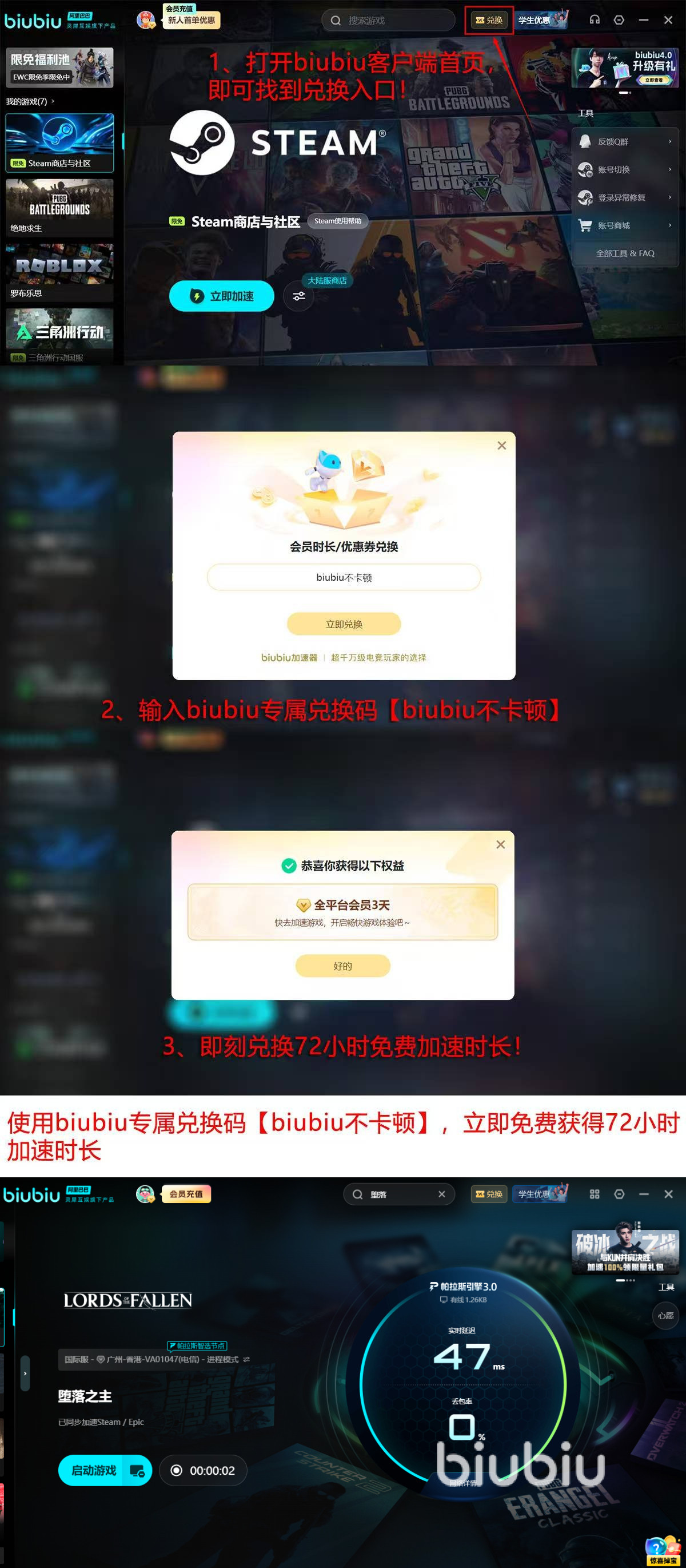 该工具搭载的帕拉斯引擎3.0,重构了底层网络协议栈与内存管理模型,在弱网环境下的帧同步容错能力提升40%,大幅减少因瞬时抖动导致的画面撕裂与掉帧连锁反应。技术团队联合职业电竞选手左梓轩开展连续72小时压力测试,覆盖从新手村到终局副本全地图、全难度档位,确保加速策略在高并发、多图层、粒子特效密集等极端条件下依然可靠。用户实测数据显示,开启biubiu后,《堕落之主》平均闪退率下降91.6%,首屏加载耗时缩短至1.8秒以内。官方新用户专享双重体验权益:注册即赠24小时全功能试用,输入激活码【biubiu不卡顿】,额外解锁72小时高级加速权限。新老权益叠加,总计可享96小时无中断游戏体验,彻底摆脱闪退困扰。