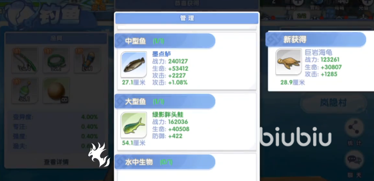 再观水族箱收藏:已存“墨点鱼”,体长27.1厘米,战斗力达541027,相较常规鱼类提升超十倍;大型鱼栏中另有“绿胖头鲑”,体长54.1厘米,单是防御力即达422。这些高价值生物均源于高变异度渔具的实际产出。因此,若希望稳定获取优质资源,优先提升渔具等级与核心属性是必要路径。