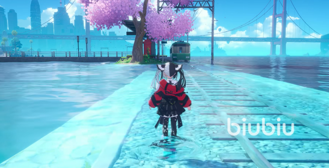 首推“水上列车”——一种融合复古机械美学与未来科技感的载具系统。玩家可在沿岸指定车站候车,列车采用环形轨道设计,全程贴合水体走向,串联湖泊、河道及关键区域传送节点。车厢内部设有可互动NPC,对话可触发支线剧情并补全世界观设定;更支持自由登顶,获得全景式水面视野。行驶途中穿越特定河段时,两岸自动呈现动态樱花林景致,强化沉浸式通勤体验。