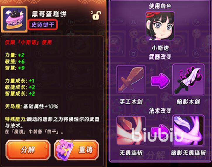 游戏中饼干体系共设五档品质,从普通至史诗级逐级递进。基础饼干提供单一属性加成,而史诗及以上品质不仅强化数值幅度,更附加不可替代的专属特效。例如猫饼以圆润猫脸造型为辨识特征,黑莓蛋糕饼则侧重精致外观与中高阶属性组合;二者均属稀有品类,需结合队伍定位审慎选用。值得注意的是,所有饼干的属性增益效果严格遵循品质等级设定,不存在跨档越级突破机制。