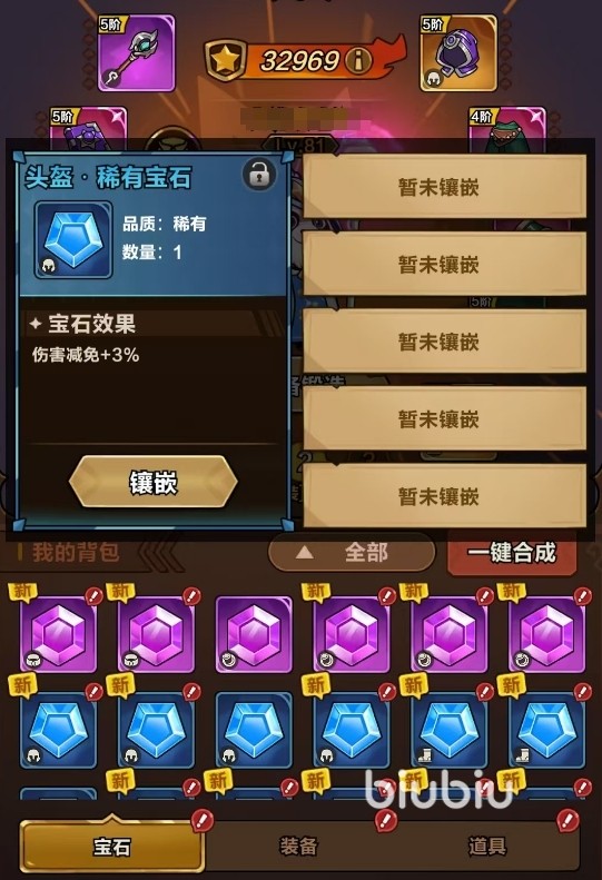 低品质宝石支持合成升级,三颗同类型低阶宝石可合成一颗高一阶的宝石。游戏内置一键合成功能,大幅简化操作流程;同时提供宝石锁定机制,玩家可手动设置保护状态,避免误操作导致珍贵宝石被纳入合成队列。此外,宝石词条支持洗练重置,但需消耗指定道具——该道具通过日常关卡挑战、离线挂机奖励等途径稳定获取,供应量充足。特别提示:若宝石显示“稀有”标识,则代表其当前词条组合具备极低出现概率,建议保留原状,不建议进行洗练操作。