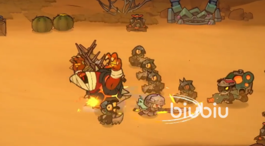 第二关共含四张独立地图:泥鱼沼泽、废村、荒漠与冰音洞窟。泥鱼沼泽以鱼人、猎蛛为常规敌人,Boss固定为变异神仆,该单位具备毒液喷射、召唤变异单位及震地拍击三项核心技能;废村区域出现变异村民、野猪等基础单位,精英层为变异巨人屠夫,Boss组合为守卫与炼金术士。守卫复用园丁的攻击框架但无形态切换,新增全屏蓄力重击;炼金术士为双体协同型Boss,两具个体各自拥有独立血条,任一单位被击杀将立即激活另一方的狂暴状态,其攻击频率与覆盖密度高于园丁狂暴形态;荒漠地图中史莱姆按元素属性分化,蜥蜴人则依体型划分为普通(小型)与精英(巨型),Boss为船长与宝藏安康——前者可操控火炮实施全域打击,后者通过红圈标记锁定区域并吞噬范围内所有目标;雪原地图部署傀儡与雪兽两类单位,同样按体型区分强弱,Boss为剑客与巨像——剑客以高速斩击与分身幻影构建连招体系,巨像则擅长冰柱天降与地面范围技压制。