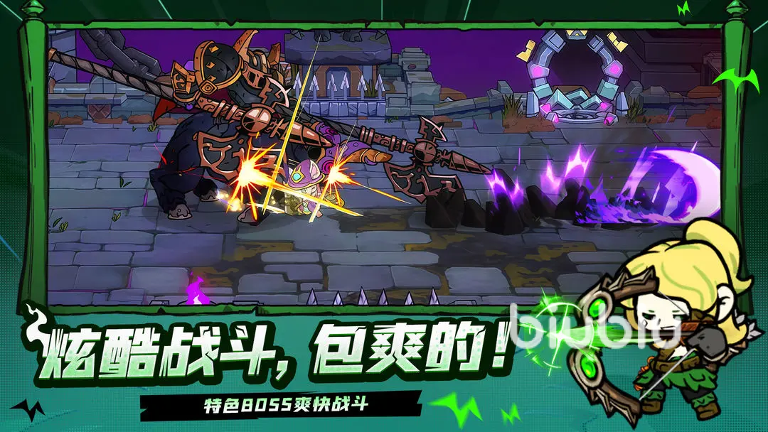 首关为黑森林地图,作为新手引导区域,其敌人体系由三类哥布林构成:基础型小怪(普通哥布林)、中阶精英(大型哥布林)及三位随机轮换的Boss。Boss组合包括哥布林第一勇士、木灵守护者与疯狂的园丁。哥布林第一勇士以近战突进为主,具备龙车冲锋与空中砸击两种高威胁动作;木灵守护者形态为巨型树形单位,在继承前者近战逻辑基础上,新增孢子追踪弹道攻击;疯狂的园丁则拥有双阶段机制——初始阶段仅使用剪刀直线突刺,进入第二形态后触发狂暴状态,解锁远距离冲刺与多段连续剪击,整体输出节奏与压制范围大幅提升。