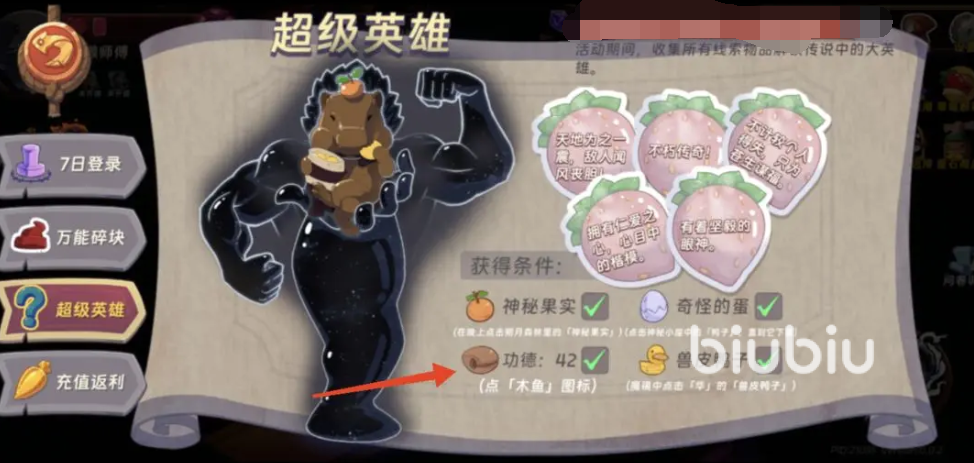 集齐上述四件道具(兽皮鸭子、神秘的果实、奇怪的蛋、功德木鱼)后,返回游戏主菜单界面,系统将自动检测道具完整性。检测通过后立即触发专属剧情动画,最终完成“神秘的天才水豚”的解锁流程。