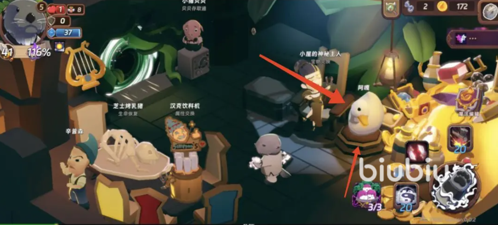 第二件道具是“奇怪的蛋”。获取前提为击败首名首领Boss。战斗结束后进入休息阶段,场景切换至一处空旷平台,此时一只纯白色鸭子NPC将自动出现在画面右侧。玩家需主动靠近并与之对话,完成一次基础交互后,即可获得“奇怪的蛋”。