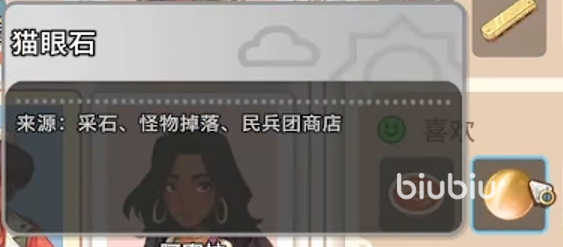 猫眼石属于全角色适配型矿产类礼物,无性别或职业限制,几乎不存在反感风险。玩家可通过常规采矿活动随机获得,平均挖掘3–4组矿石即可产出1枚。前期建议随缘收集,无需刻意堆叠;中后期开放矿石商店后,可按需补货,灵活控制库存。
