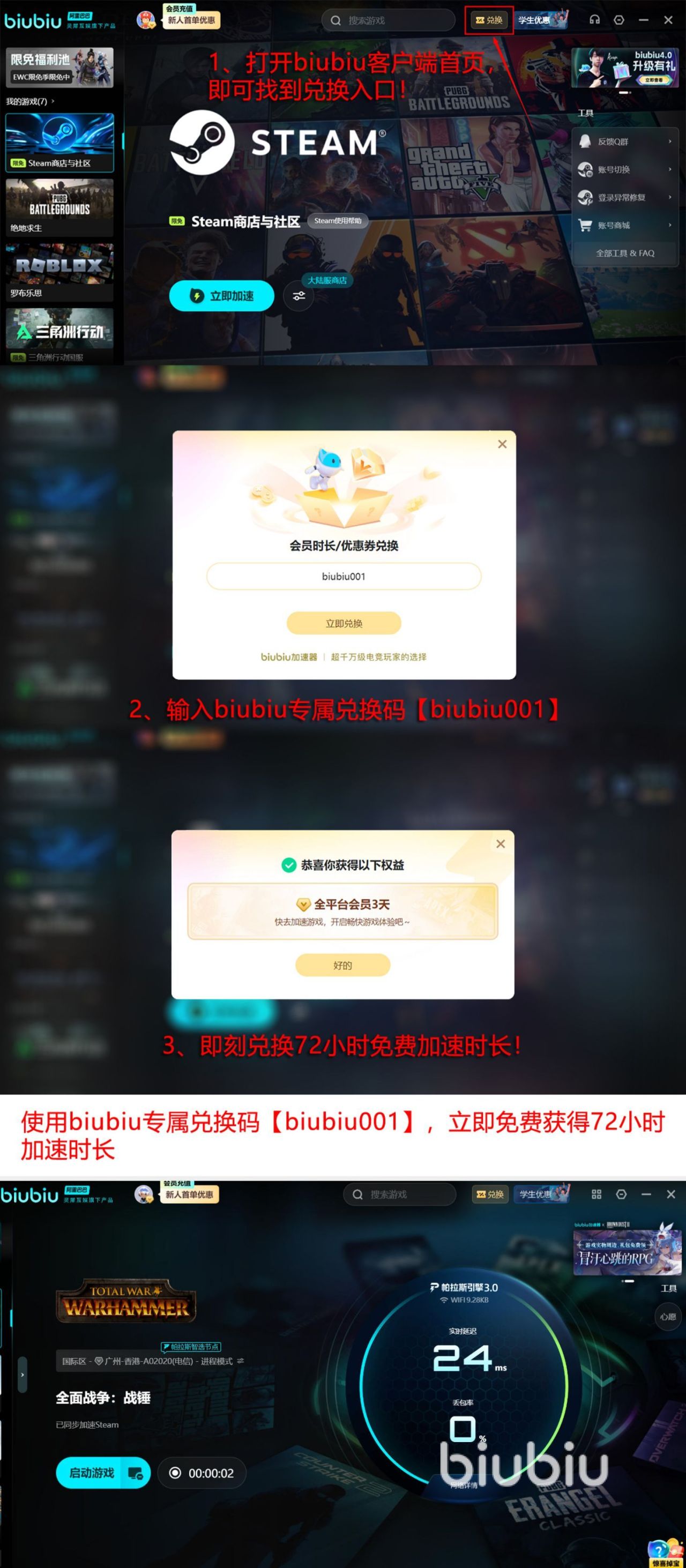 这款加速器的整体实力是首屈一指的,作为阿里巴巴灵犀互娱大厂创作出的加速器拥有着雄厚的技术沉淀,再加上设计技术时已经投入很多经济,还独立研发出帕拉斯3.0引擎,这些实例已经成为了加速器的最大亮点,因此成为了pero战队赛事的指定合作加速器,还邀请到pubg冠军小叮当的推荐和率先使用。新老用户在使用时都无需担忧,因为提供的惊喜让人意想不到,新手用户成功下载成功注册之后就可获得24小时免费加速时长,另外,新老用户都可直接输入口令【biubiu001】,立即获得三天的免费加速特权。这种福利对于新用户来说都可叠加,累计时长就达到96小时。