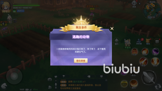 在绕行过程中,请重点关注草丛边缘及围栏转角等视觉易忽略的角落。此处会随机刷新一只静止的小兔子,它是整个隐藏任务的唯一触发媒介。当小兔子出现并产生轻微动作(如抖动或抬头)时,立即对其使用近战攻击,持续打击直至其被击败。此步骤不可跳过,亦不可误判为普通环境生物——唯有完成对该兔子的击倒动作,系统才会即时弹出任务激活提示,正式开启“巡回出逃”隐藏支线。